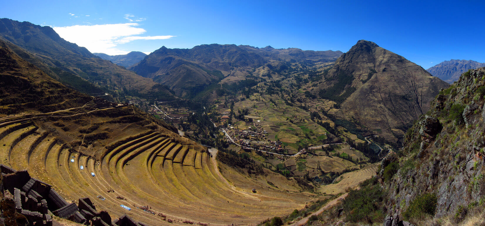 We start by picking you up from your hostel or the United Mice office. After a 45-minute drive, we reach Qorao, a lookout that offers stunning views of the Sacred Valley. From there, we journey to Pisac. This traditional market, bustling with both locals and tourists, retains its authentic charm. We then ascend to the Inca ruins above Pisac, showcasing some of the region’s most exquisite Inca architecture. These ruins once stood as a fortification against potential threats, with significant religious structures like the Sun Temple.